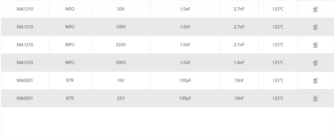 风华常用贴片电容1pF~22uF,25V,50V,100V概览介绍